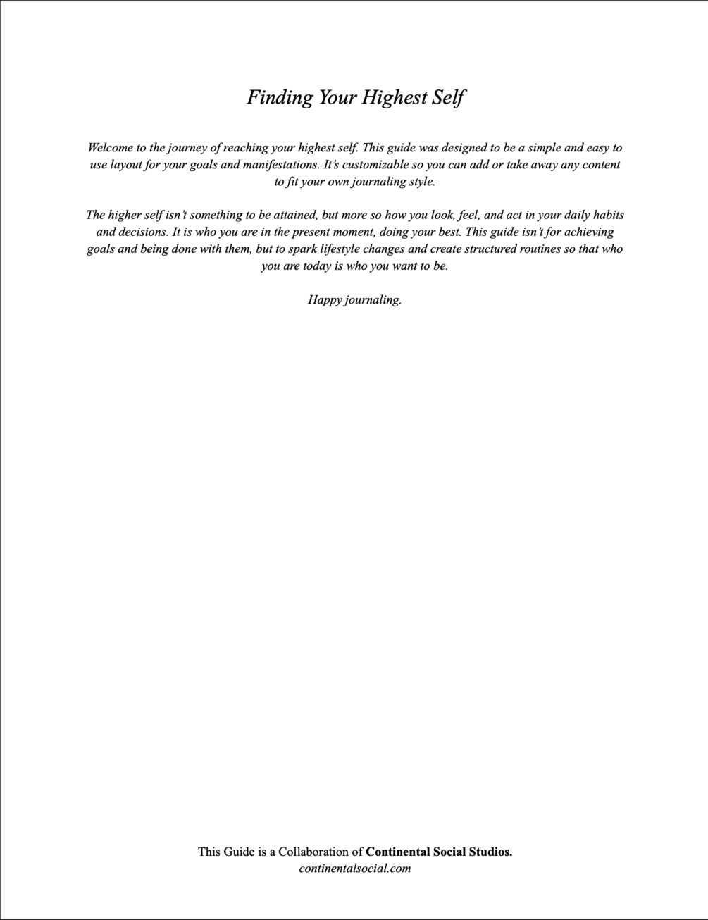 Becoming your highest self is more attainable than you think. Step into your authenticity with 23 pages full of affirmations, lined journal prompts, guided meditations and a monthly theme and intention tracker that can be printed as many times as you like.